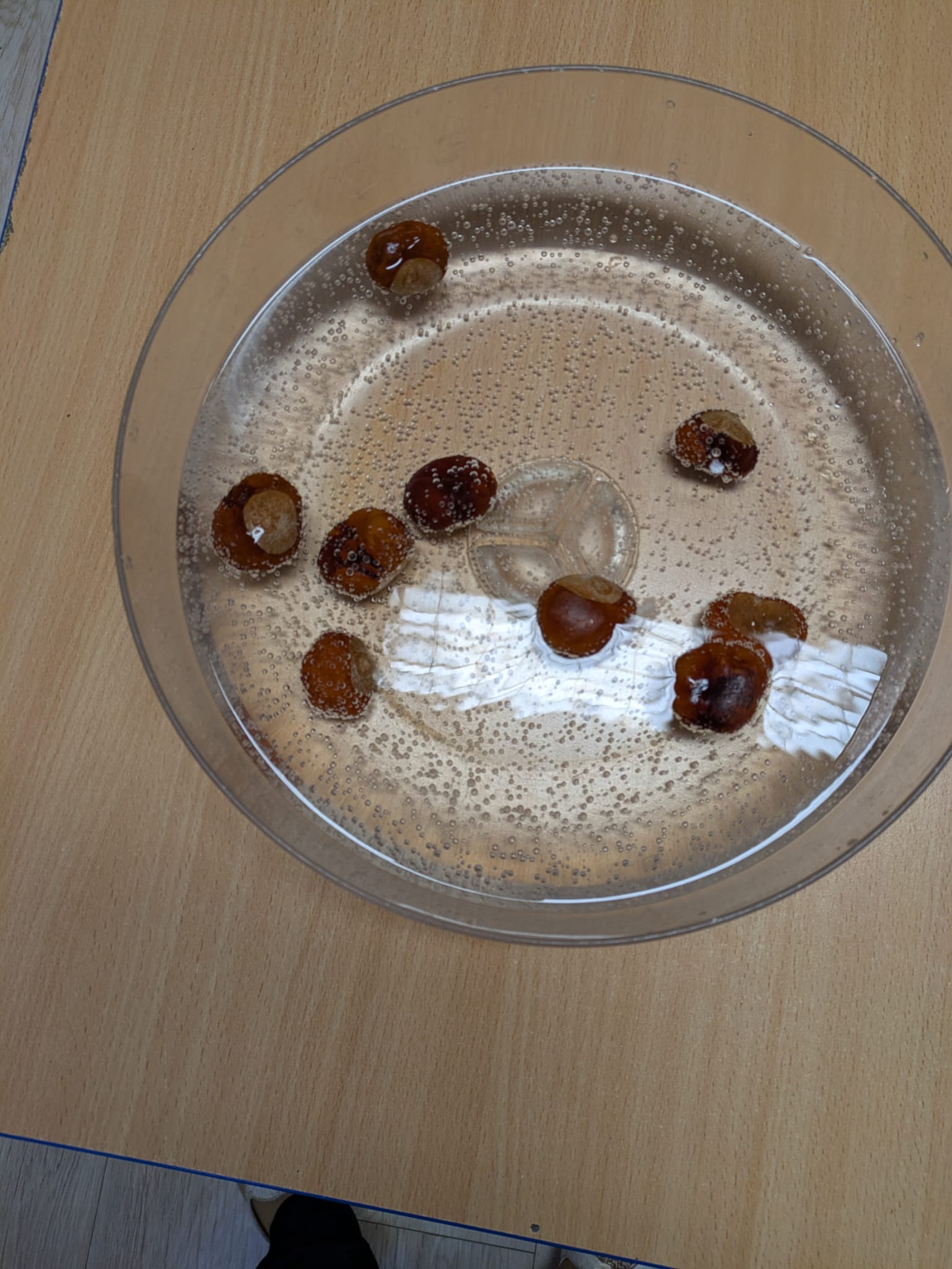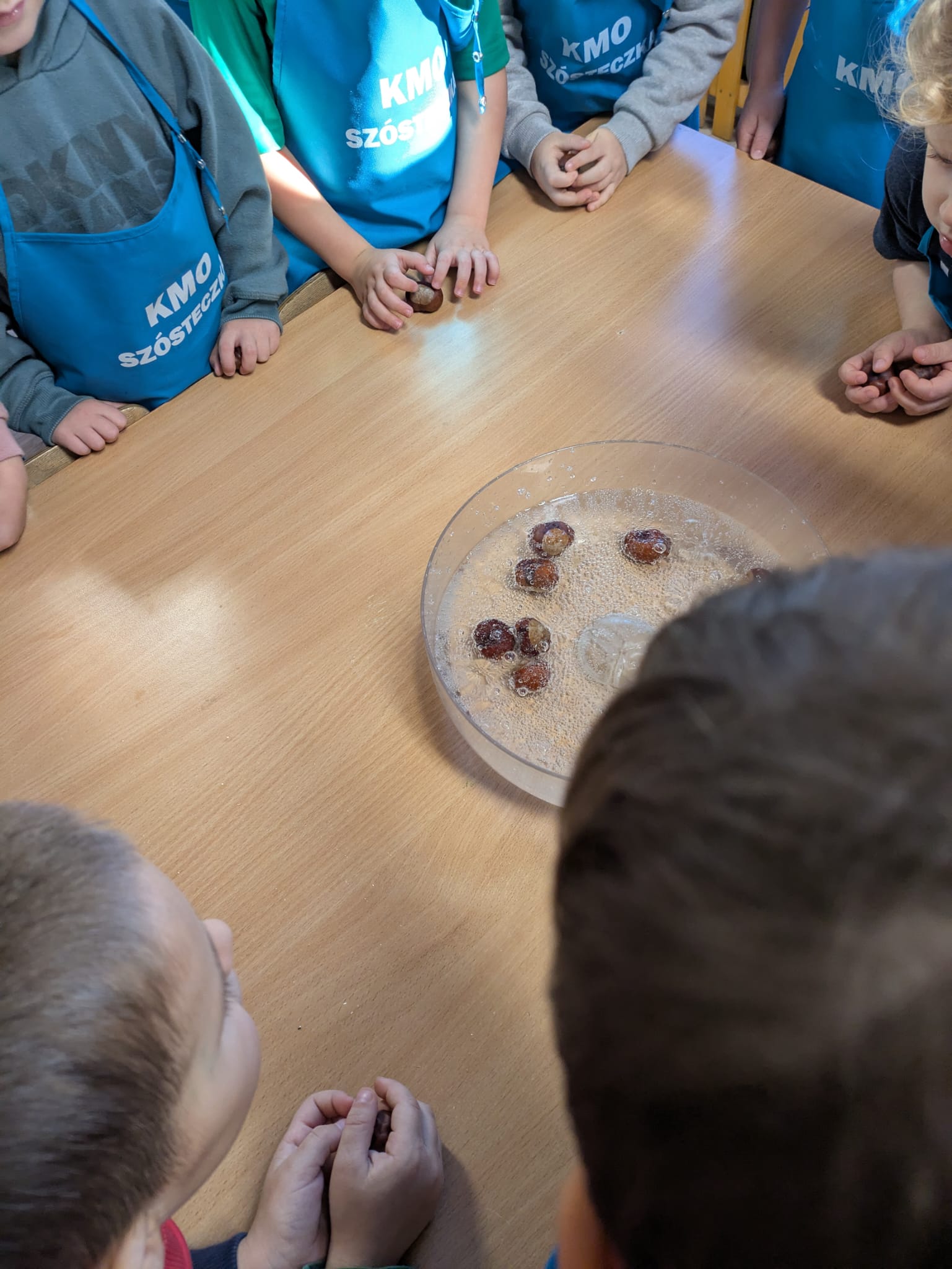 Odkrywcy sprawdzali hipotezę: przedmioty wypełnione powietrzem pływają w wodzie. Tym razem na warsztat wzięto warzywa i owoce. Badano, w których z nich jest najwięcej powietrza oraz jak zachowują się w wodzie kawałki tychże owoców i warzyw. Eksperyment warto powtórzyć w domu!